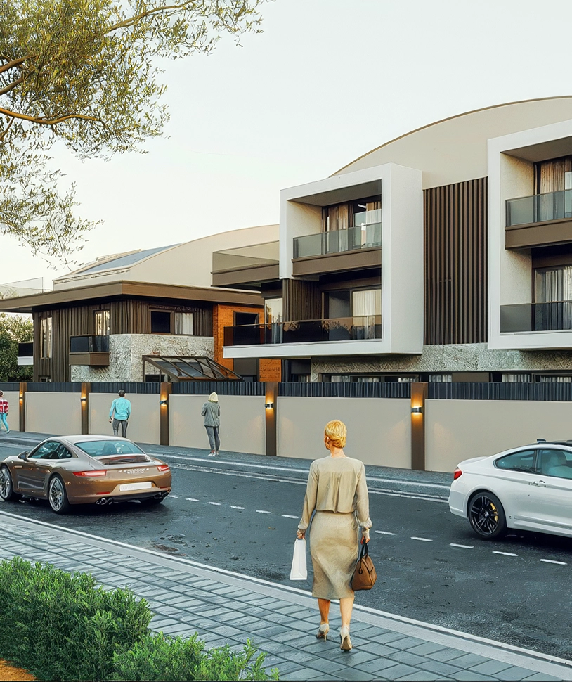 Modern mimari ve huzurlu peyzajın buluştuğu, ferah manzaralı konforlu yaşam alanları sizi bekliyor.